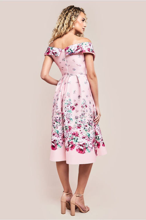 Floral Printed Flutter Sleeve Chiffon Midi Dress - Peach by Goddiva -